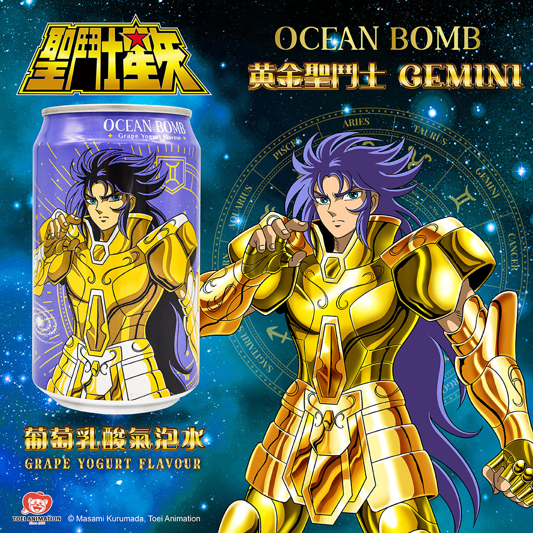 Esplora il gusto avventuroso e l'energia travolgente con Ocean Bomb I Cavalieri dello Zodiaco Saga dei Gemelli! Questa bevanda frizzante ti porta in un viaggio unico tra il cielo e la terra, combinando il dolce aroma dell'uva con la cremosità dello yogurt in una deliziosa sinfonia di sapori.
