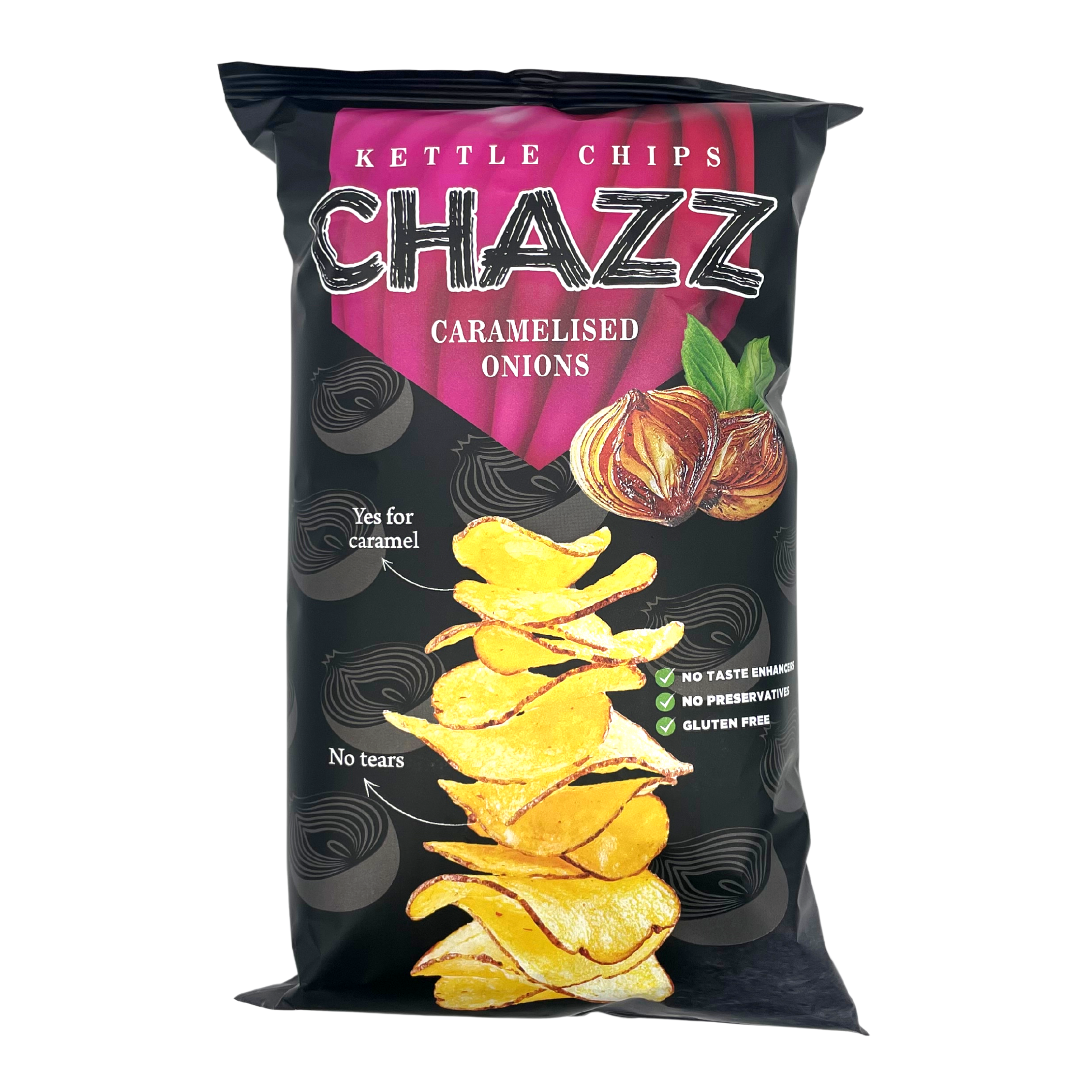 Se sei alla ricerca di un gustoso spuntino salato con un tocco di dolcezza, allora devi provare le patatine Caramelized Onion Flavored Potato Chips Chazz! Queste patatine croccanti e deliziose sono aromatizzate con cipolle caramellate, per un sapore unico e irresistibile.
